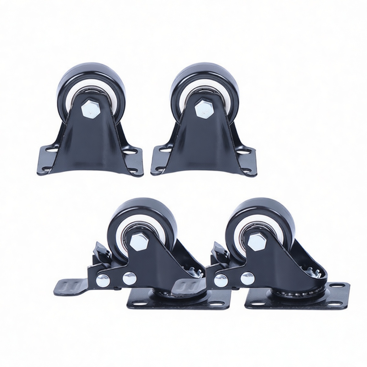 Load Capacity per Caster: 110 lbs Total System Load Capacity per Set: 440 lbs Wheel Diameter: 1.5 in Overall Mounting Dimensions: 2.4 x 1.7 in Installation Height: 2.4 in Wheel Material: Polyurethane Stem Type: Plate Mount Brake Mechanism: Dual-wheel locking system on designated units Package Quantity: 40 complete sets