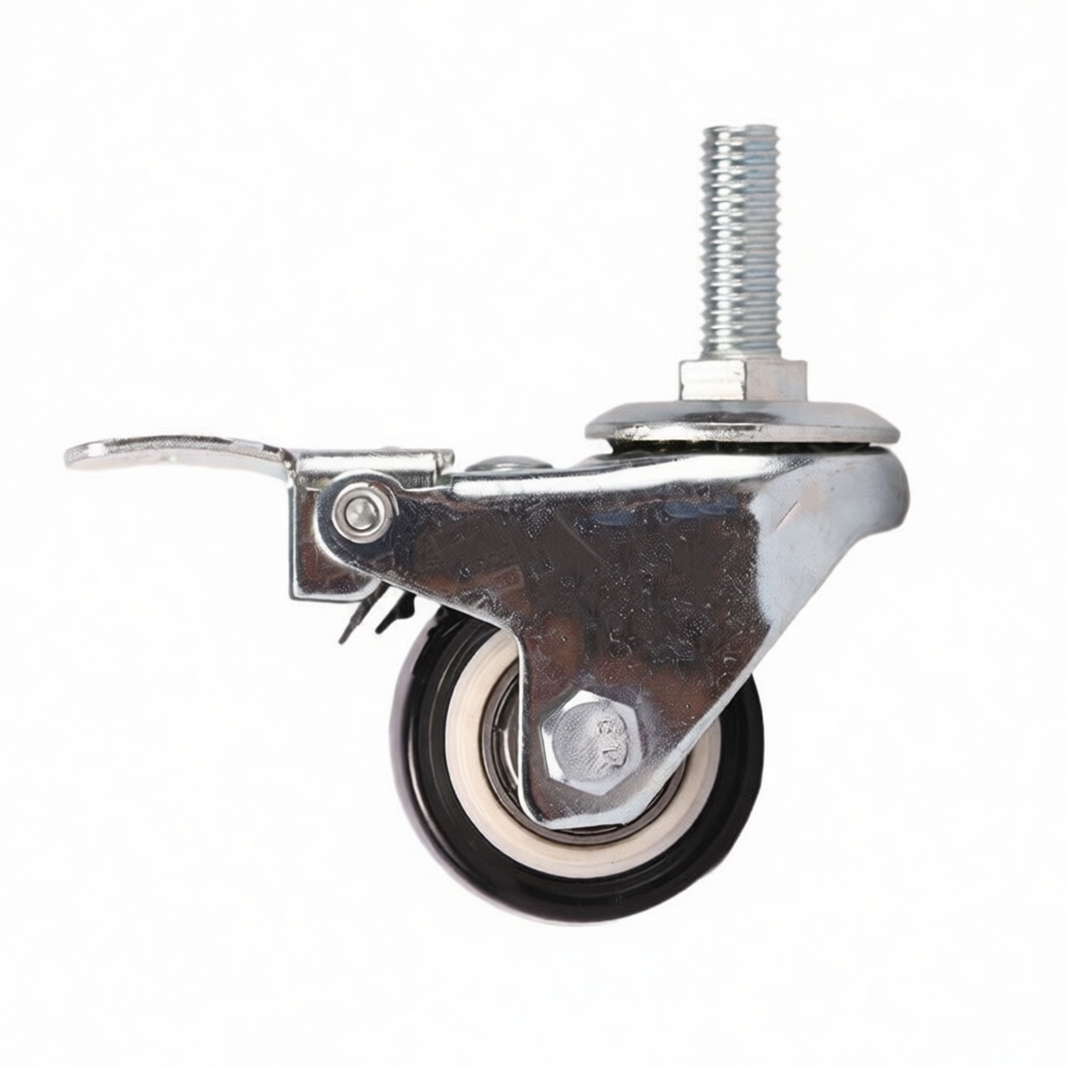 This threaded stem caster is engineered for light-duty commercial and industrial environments where reliable mobility and secure positioning are essential. Featuring a durable polyvinyl chloride wheel construction, these units deliver quiet operation while protecting delicate indoor flooring surfaces from scuffs and marks. The integrated braking mechanism provides immediate stability, preventing unwanted movement when equipment is stationary. With a compact overall height and robust load-bearing capacity, this solution is ideal for medical carts, service trolleys, light machinery, and retail display units. The product is supplied in bulk packaging to support high-volume procurement needs for facility managers and equipment manufacturers.