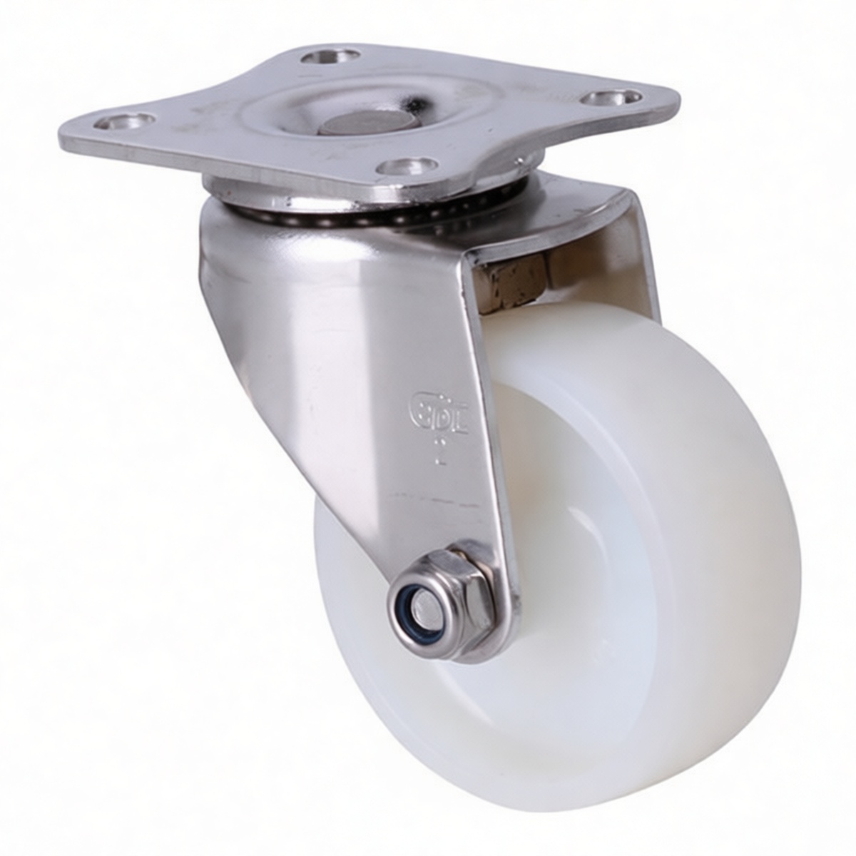 Food and beverage processing equipment requiring frequent washdowns Pharmaceutical manufacturing carts and transport systems Medical device stands and hospital utility carts Laboratory equipment requiring chemical resistance Light industrial assembly line trolleys Cleanroom environments where particulate generation must be minimized Hospitality service carts operating on hardwood or tile flooring This caster solution combines mechanical reliability with material science to address the specific needs of facilities that prioritize hygiene and equipment longevity. The nylon wheel composition offers an optimal balance between hardness for load-bearing and elasticity for shock absorption, ensuring that transported goods remain stable during transit. The stainless steel top plate and fork assembly eliminate the risk of rust formation, making this component ideal for environments with high humidity or exposure to saline solutions. Installation is straightforward via the four-bolt pattern on the mounting plate, which measures 2.13 inches by 1.73 inches, accommodating standard equipment footprints. Whether upgrading existing fleets or specifying new machinery, this caster provides a cost-effective, high-performance mobility option suitable for continuous operation cycles.