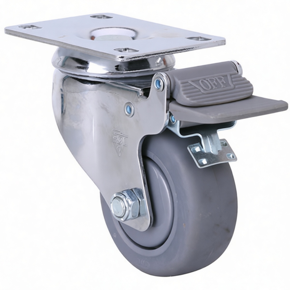 3.5-inch wheel diameter optimized for smooth rolling over minor floor imperfections Thermoplastic Elastomer (TPE) construction protects delicate flooring from scratches and dents Integrated brake system ensures stable positioning when equipment is stationary Low-noise operation suitable for quiet environments like hospitals, libraries, and offices Static load capacity of 110 lbs per caster for light-to-medium duty