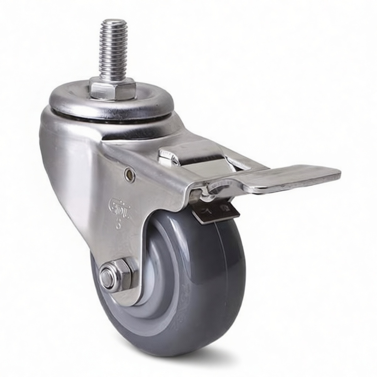 4in Polyurethane Stem Caster with Brake, 198.45 lbs Load, Pkg Qty 2