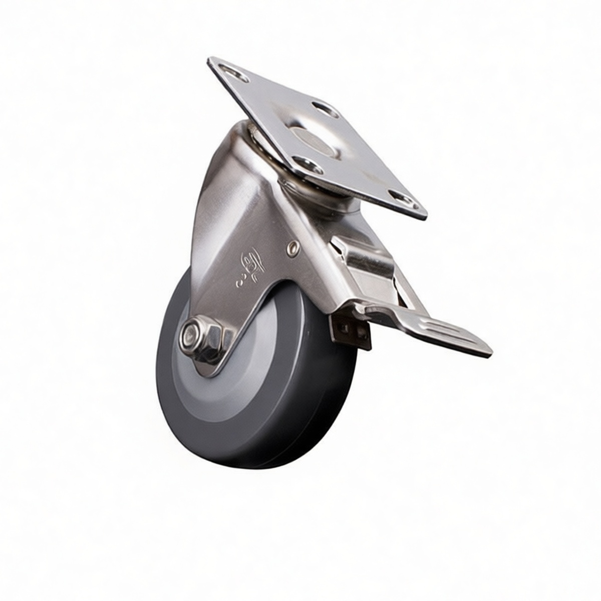 Food and beverage processing equipment requiring frequent washdowns Medical carts, hospital beds, and diagnostic imaging machinery Laboratory workstations and cleanroom transport vehicles Pharmaceutical manufacturing lines needing hygienic mobility solutions Commercial kitchen appliances and stainless steel shelving units Light industrial assembly jigs and inspection stations Hospitality service carts operating on hardwood or tile flooring The integration of a 3-inch polyurethane wheel with a stainless steel housing creates a balanced solution for facilities that cannot compromise on hygiene or floor integrity. Unlike standard rubber or nylon wheels, the polyurethane formulation offers superior abrasion resistance while maintaining a soft roll that prevents vibration transmission to delicate payloads. The mounting plate dimensions of 2.8 by 2.3 inches provide a compact footprint that fits standard equipment frames without requiring extensive modification. With an overall height of 4.0 inches, this caster maintains a low center of gravity, enhancing stability during transport. The stainless steel components resist rust and oxidation, ensuring the hardware remains functional even after exposure to moisture, cleaning solvents, or saline environments. This product is specified for operations requiring consistent mobility and strict adherence to sanitary standards.