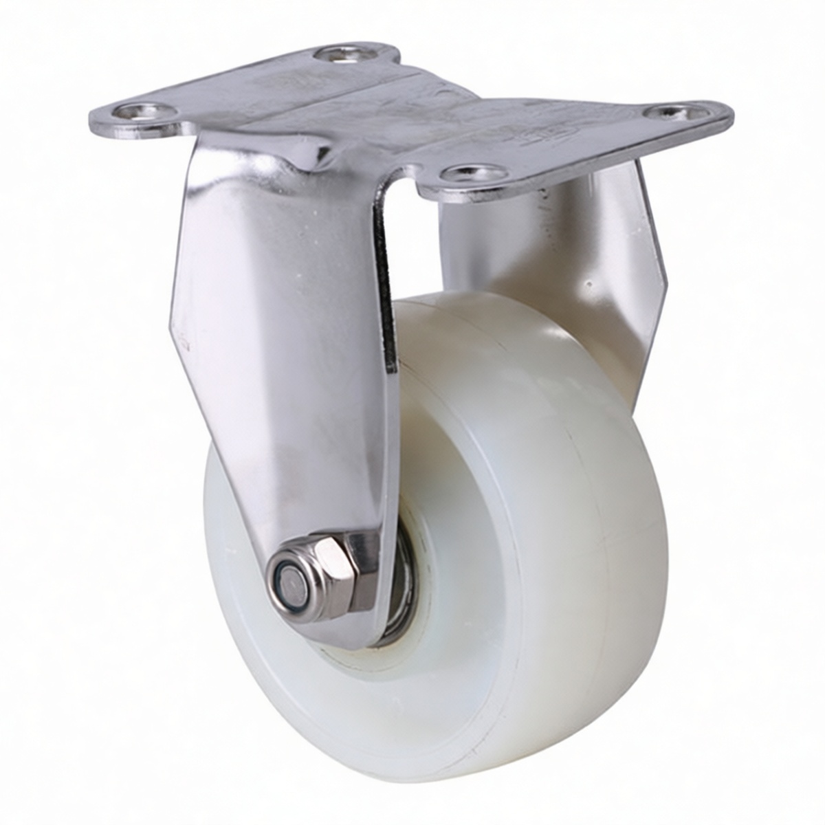 This heavy-duty rigid caster is engineered for demanding industrial environments where corrosion resistance and high load capacity are critical. Featuring a robust stainless steel frame and a durable nylon wheel, this unit delivers reliable performance in wet, sanitary, or chemically aggressive conditions. The plate mount design ensures secure attachment to heavy equipment, carts, and machinery, providing stable linear movement without swivel capability. With a substantial load rating and non-marking tread, it serves as an ideal mobility solution for facilities requiring strict hygiene standards and long-term durability.
