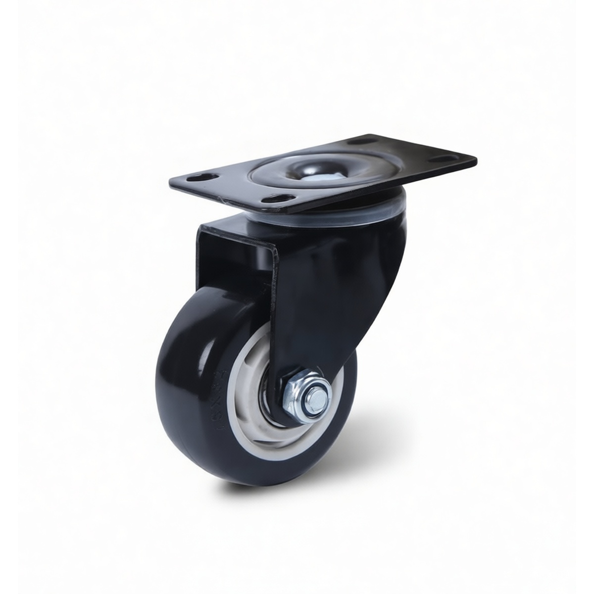 Robust 220 lbs load capacity per caster for heavy industrial use High-resilience polyurethane wheel construction prevents floor scuffing Integrated foot-activated brake secures equipment instantly Smooth rolling resistance reduces operator fatigue during transport Plate mount configuration ensures rigid attachment to equipment frames Resistant to oils, greases, and common industrial solvents Quiet operation suitable for indoor factory and warehouse environments