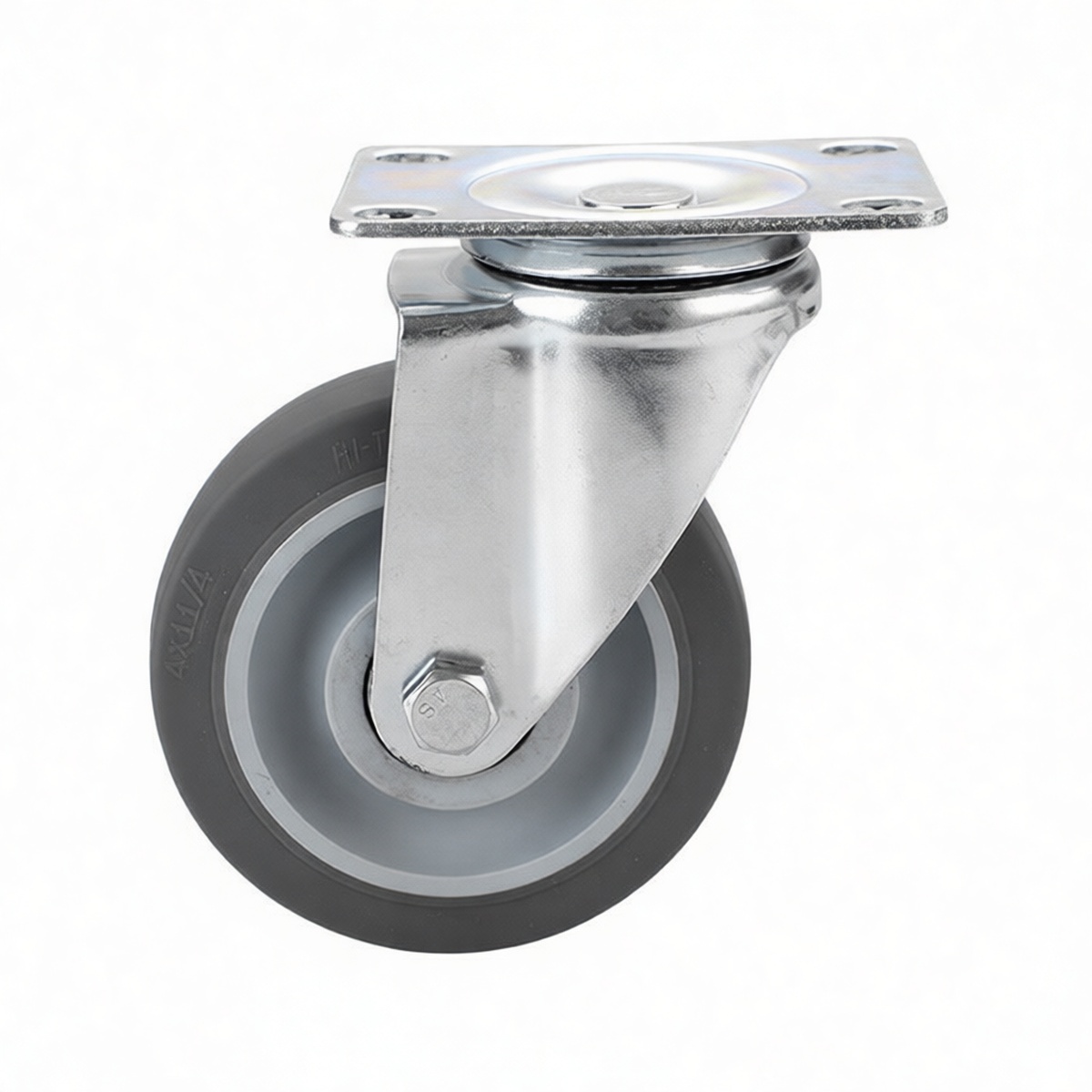 Thermoplastic Rubber wheel construction ensures silent rolling and prevents floor scuffing Swivel mechanism provides 360-degree rotation for enhanced agility in tight aisles High load rating of 165.38 lbs per caster supports heavy-duty industrial