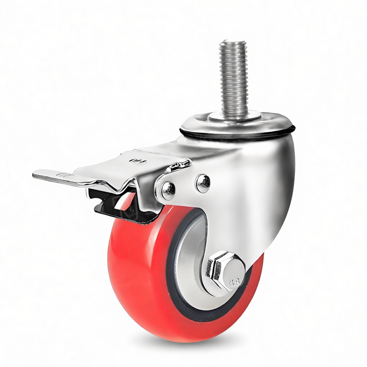 Engineered for demanding industrial applications, this 3-inch polyurethane stem caster delivers a robust load capacity of 275.62 lbs per unit. The durable polyurethane wheel construction ensures smooth rolling resistance while protecting sensitive flooring surfaces from scuffing and damage. Integrated double brake mechanisms provide superior locking stability on both the wheel and swivel raceway, securing equipment safely during stationary operations. Sold in packages of six, these casters combine high-weight support with reliable maneuverability, making them an ideal solution for heavy-duty carts, medical equipment, and material handling machinery requiring precise positional control.