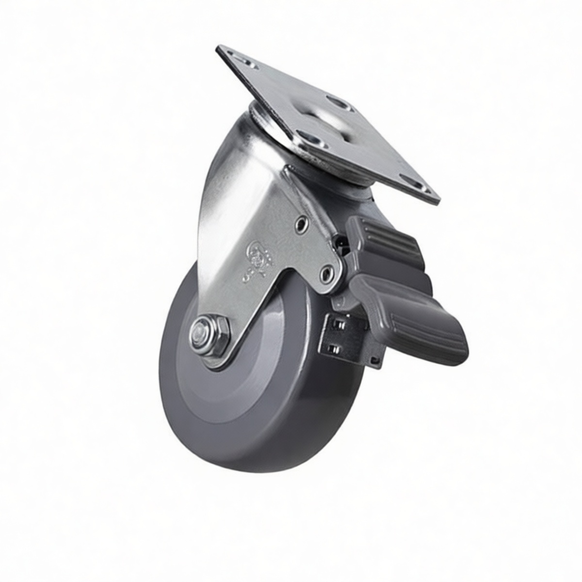 Hospital and medical equipment carts Office furniture and mobile workstations Light industrial assembly line trolleys Retail display racks and shelving units Food service carts in commercial kitchens Audio-visual equipment stands Laboratory instrument transport Janitorial cleaning buckets and mop wringers