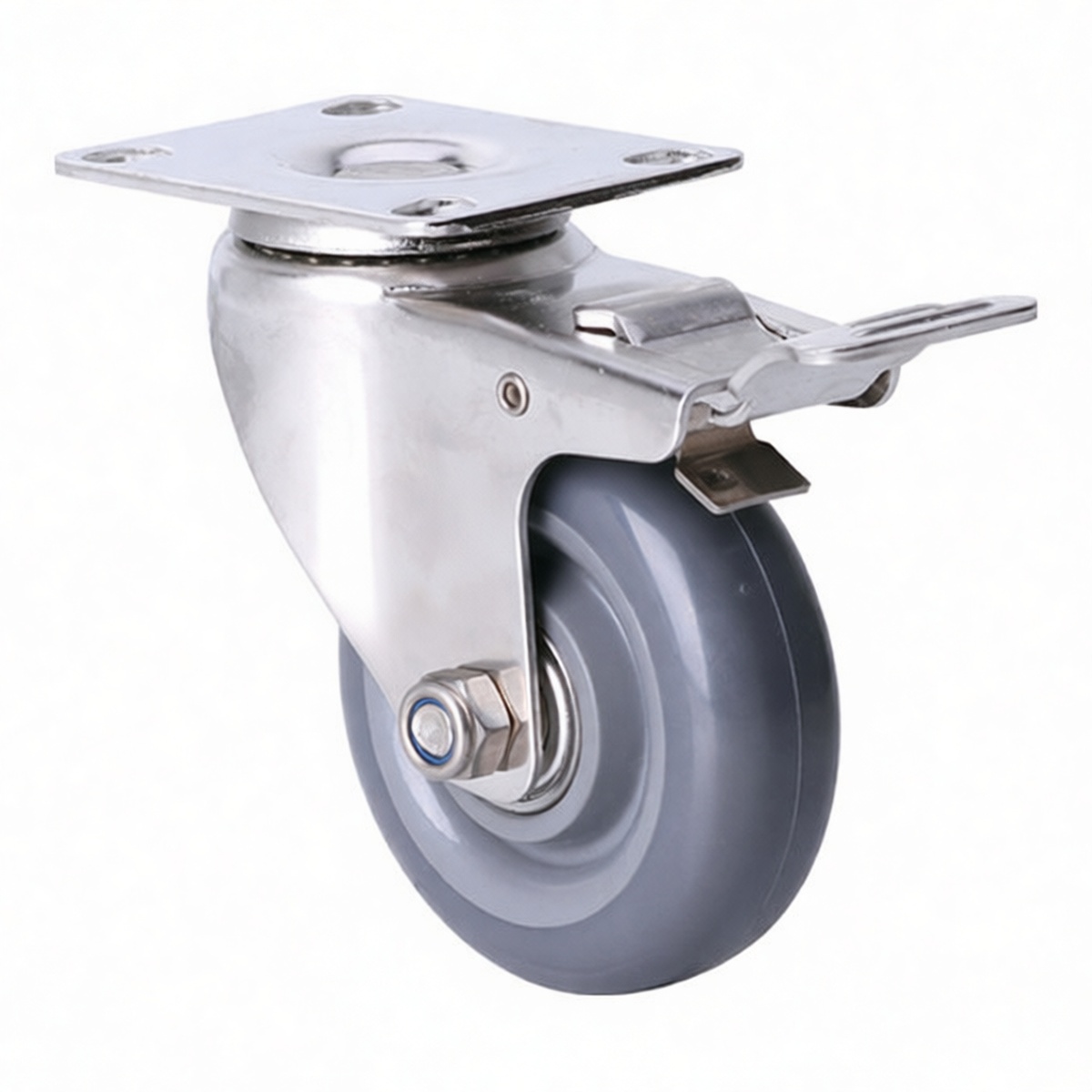 High-load polyurethane wheel supports up to 176.4 lbs per unit Integrated brake system ensures secure locking and prevents unwanted rolling Non-marking wheel composition protects sensitive flooring from damage Quiet operation suitable for indoor commercial environments Compact profile fits tight installation spaces with limited clearance Durable construction resists wear, chemicals, and daily industrial abuse Smooth rolling performance reduces operator effort during transport