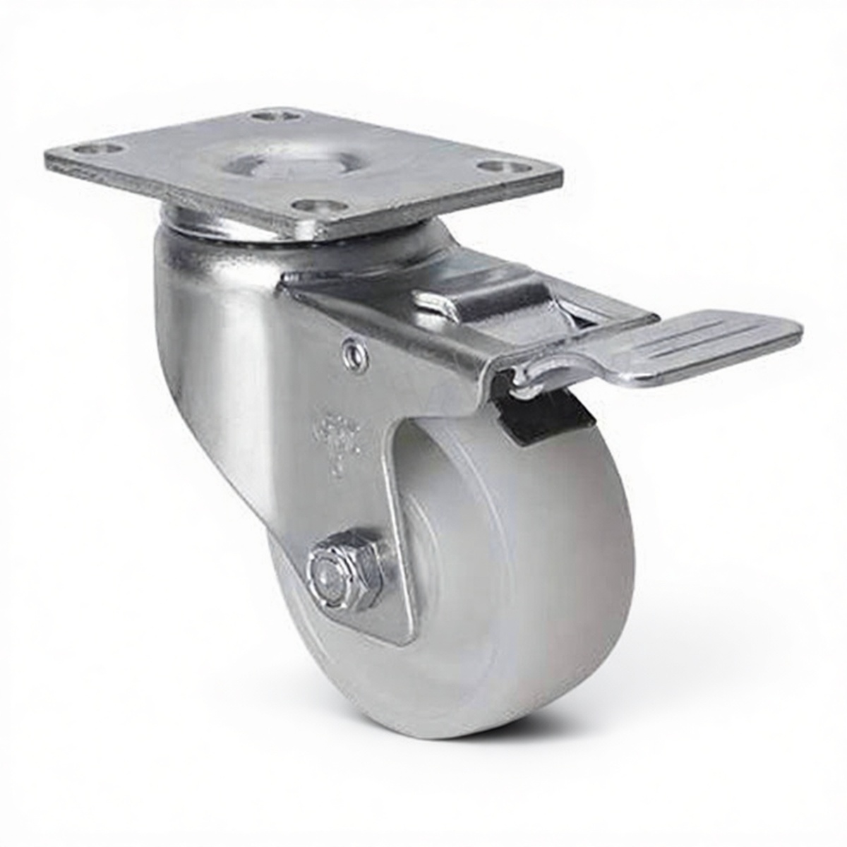 High-load nylon wheel rated for 130 lbs static capacity Integrated brake system for secure stationary positioning Superior resistance to abrasion, oils, and chemical exposure Smooth rolling performance on hard floor surfaces Compact 3.5-inch overall height for space-constrained installations Durable construction suitable for continuous commercial use Sold in bulk packs of 10 for cost-effective project scaling