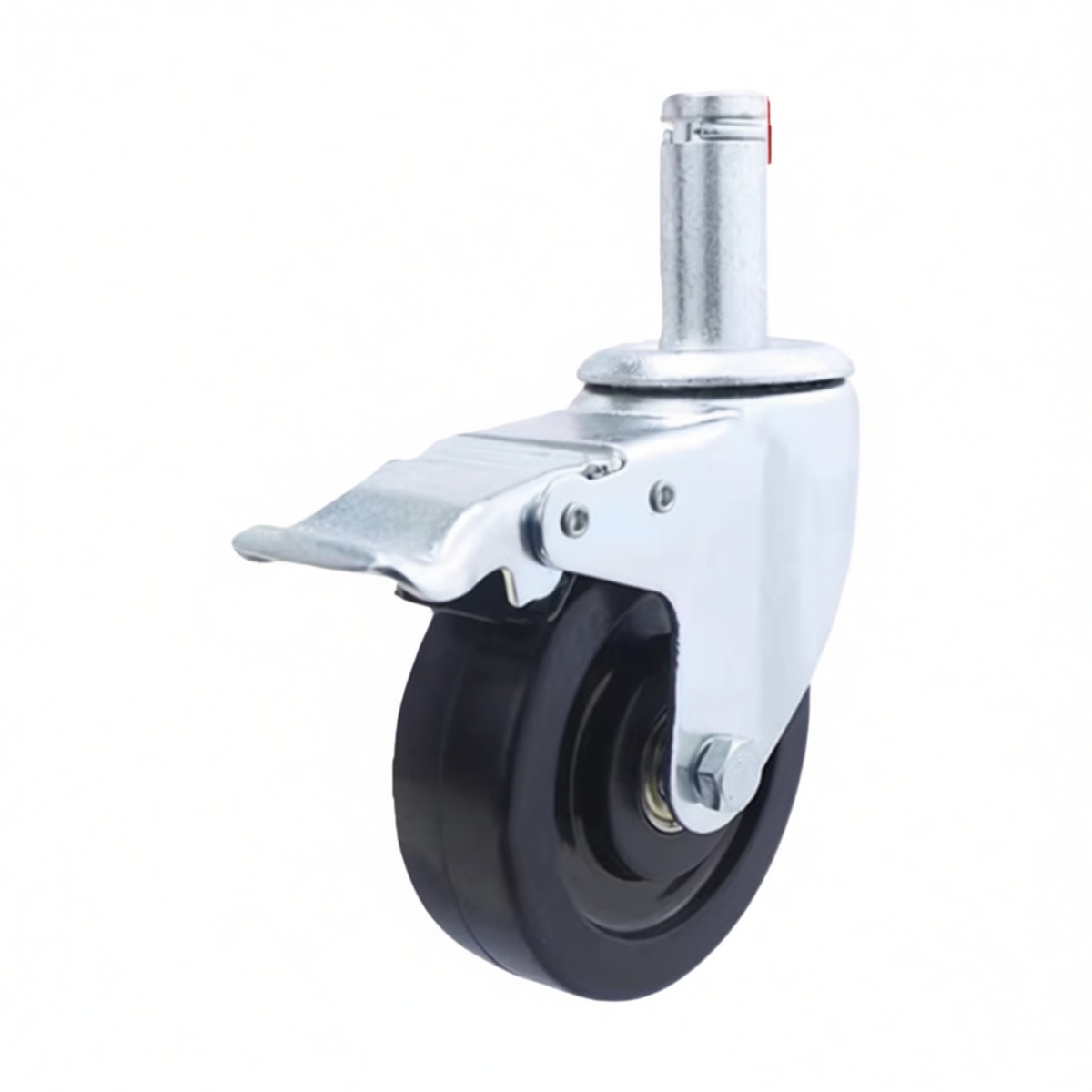 Integrated brake system for immediate wheel locking and enhanced safety Durable rubber wheel tread protects delicate flooring surfaces Swivel design provides 360-degree maneuverability for tight spaces Grip ring stem ensures a secure, vibration-resistant installation Quiet rolling performance suitable for indoor industrial facilities High load-bearing capacity supports heavy-duty transport requirements Corrosion-resistant finish extends product lifespan in harsh conditions