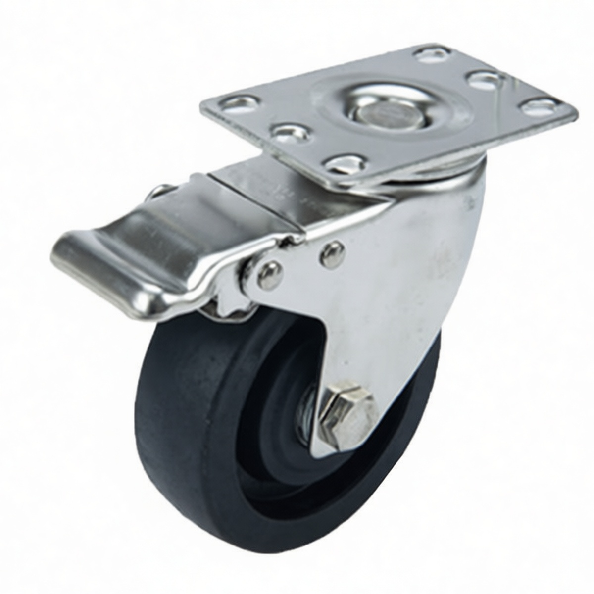 Corrosion-resistant stainless steel construction for harsh environments High-strength nylon wheel resists cracking, chipping, and floor damage Integrated dual-wheel brake system for secure locking and safety Heat-resistant properties suitable for elevated temperature zones Smooth 360-degree swivel action for enhanced maneuverability Plate mount design ensures rigid attachment to heavy equipment frames Low maintenance requirements for reduced operational downtime