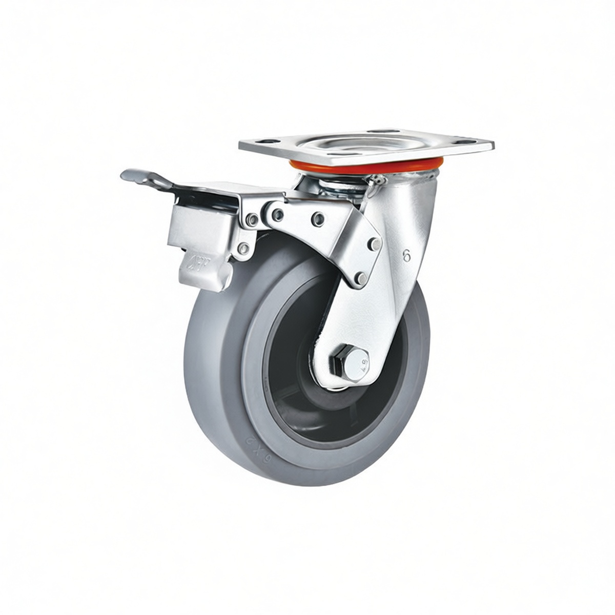 Thermoplastic rubber tread protects delicate flooring surfaces from scuffs and marks Anti-static properties safely dissipate electrostatic discharge in sensitive areas Integrated brake system locks the wheel securely to prevent unintended movement Heavy-duty construction supports loads up to 440 lbs per unit Quiet rolling operation reduces noise pollution in workspaces Plate mount design offers maximum stability and ease of installation Resilient material resists cracking, chipping, and chemical exposure