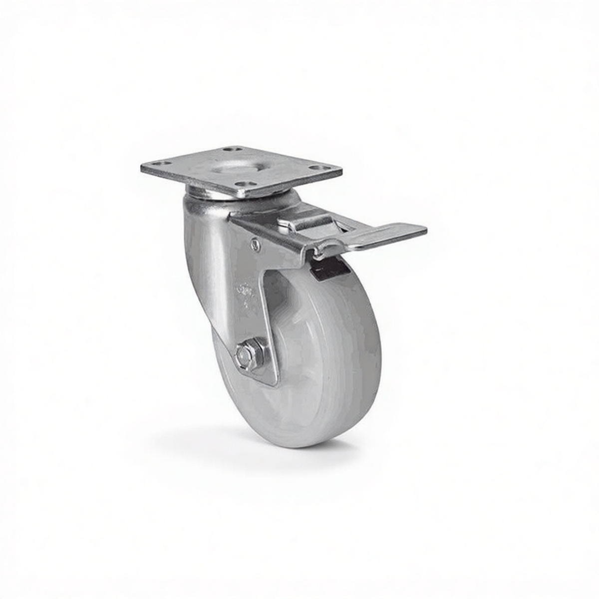 Galvanized steel top plate resists rust and chemical corrosion High-strength nylon wheel protects floor surfaces from scuffing and damage Integrated brake system ensures secure stationary locking Temperature resistance rated up to 180°F for varied environmental conditions Smooth rolling design reduces operator effort and fatigue Precision ball bearing raceway for consistent maneuverability Heavy-duty construction supports dynamic and static loads effectively