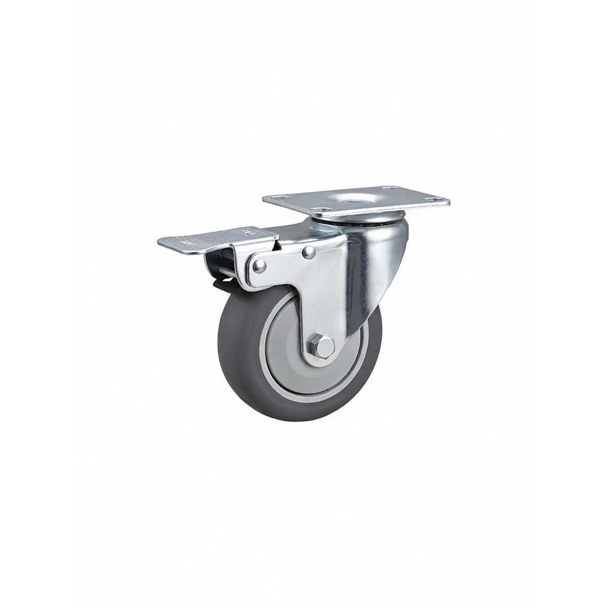 4" TPR Plate Mount Caster, Steel, 220 lbs Load, Swivel Brake, Pkg Qty 20