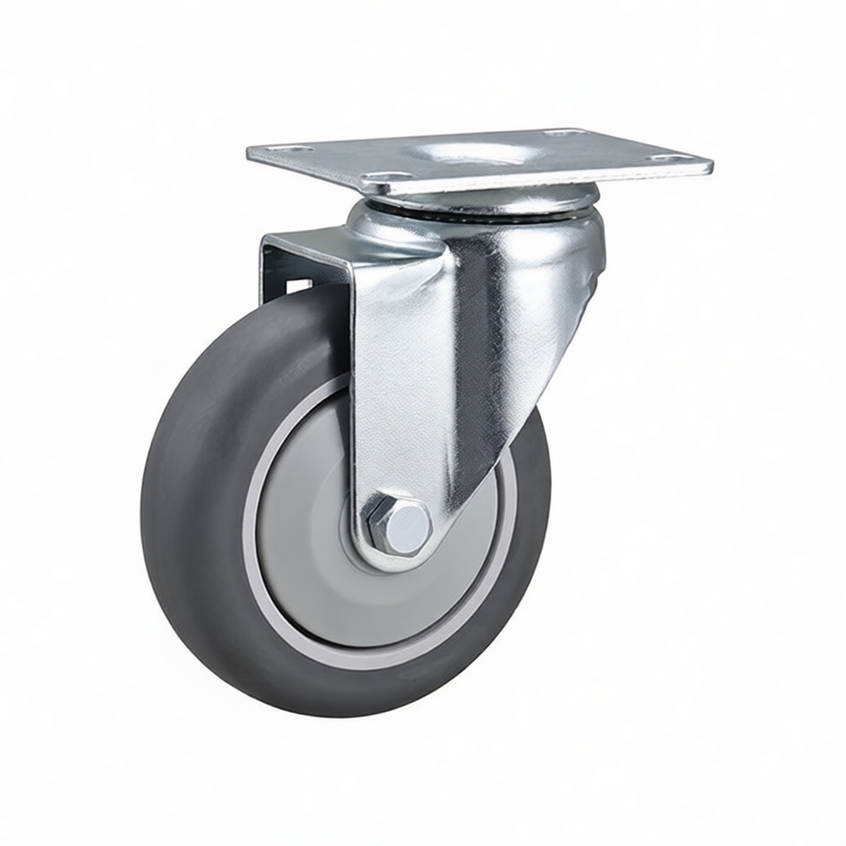 Thermoplastic rubber wheel construction for silent, non-marking operation 220 lbs load capacity per caster suitable for light industrial tasks 360-degree swivel mechanism for precise maneuverability in confined spaces Chemical and wear-resistant wheel material for extended service life Steel plate mount offers rigid structural integrity and easy installation Vibration-dampening properties protect sensitive equipment and flooring