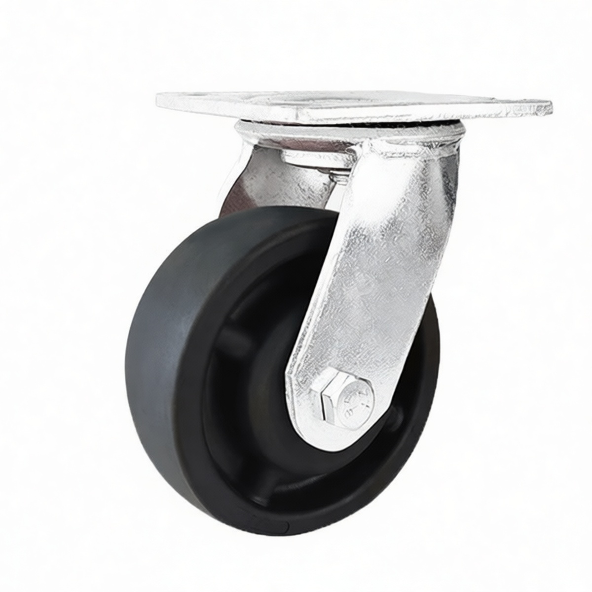 Heavy-duty industrial carts and dollies requiring high weight distribution Foundry and metalworking facilities with elevated ambient temperatures Chemical processing plants where spill resistance is critical Food processing equipment needing non-porous, sanitary wheel surfaces Warehouse automation systems operating on concrete or epoxy floors Textile manufacturing machinery requiring static-dissipative properties Glass handling equipment where vibration dampening and floor safety are paramount