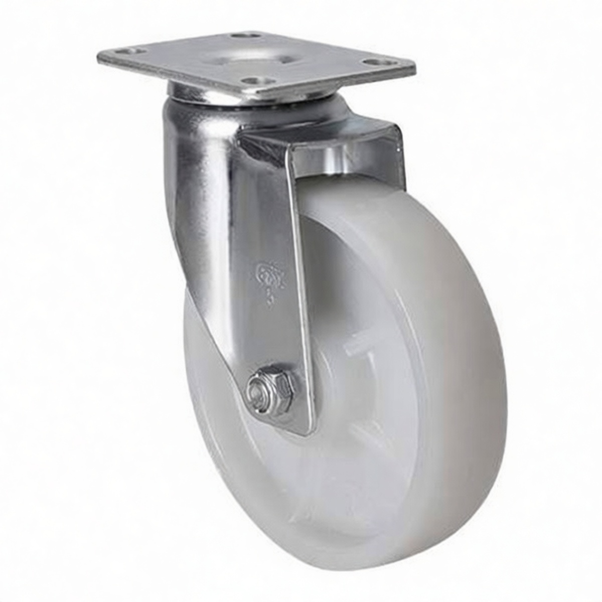 Static load capacity rated at 286 lbs per caster High-strength nylon wheel construction for wear resistance Galvanized steel top plate provides superior corrosion protection Precision ball bearing raceway ensures smooth swiveling action Optimized for use on concrete, epoxy, and other hard industrial floors Low maintenance design reduces operational downtime Secure four-bolt mounting pattern for stable equipment attachment