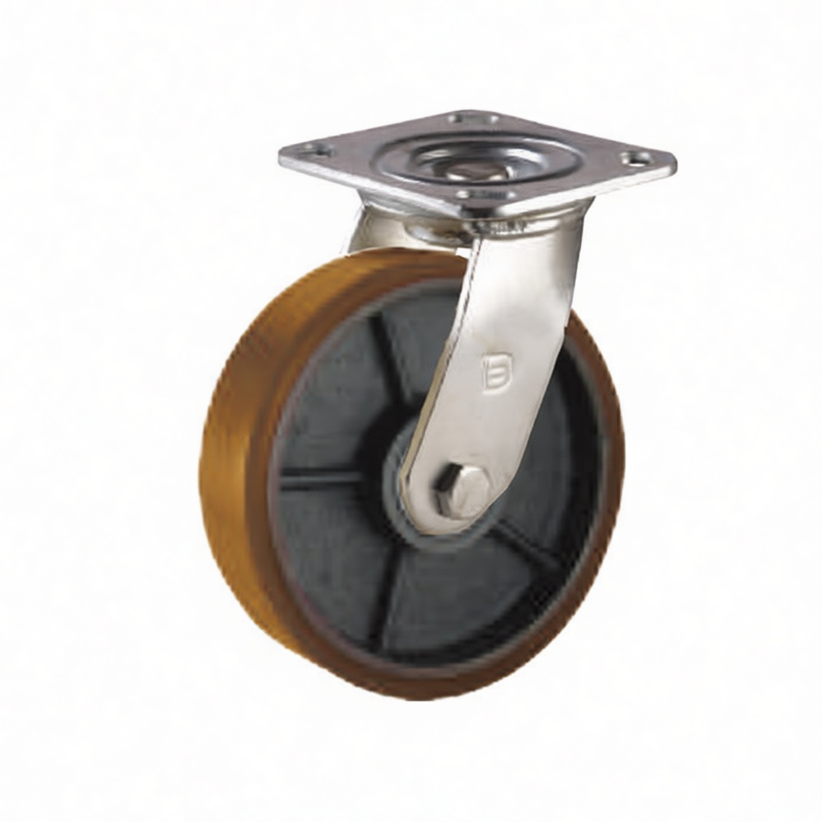 Load capacity rated up to 924 lbs per caster Double axle swivel design for enhanced stability and smooth turning Precision-molded polyurethane wheel tread reduces rolling resistance Iron core construction provides superior structural integrity Non-marking wheel material protects concrete, epoxy, and tile floors High-impact resistance suitable for uneven or rough industrial surfaces Compact footprint allows for easy integration into existing equipment frames