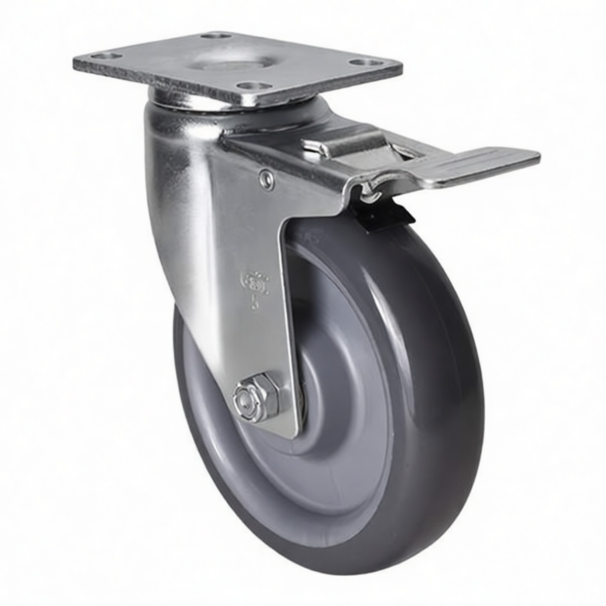 This heavy-duty caster is engineered for rigorous industrial material handling applications where stability and floor protection are paramount. Featuring a robust galvanized steel construction, the unit offers superior resistance to corrosion and environmental wear. The 5-inch polyurethane wheel provides an optimal balance between load-bearing capacity and smooth rolling resistance, ensuring effortless maneuverability even under maximum load. An integrated braking mechanism allows for secure positioning of equipment, preventing unintended movement during loading, unloading, or stationary operations. Designed with a plate mount configuration, this caster integrates seamlessly with standard heavy-duty carts, racks, and machinery, delivering reliable performance in warehouses, manufacturing facilities, and distribution centers.
