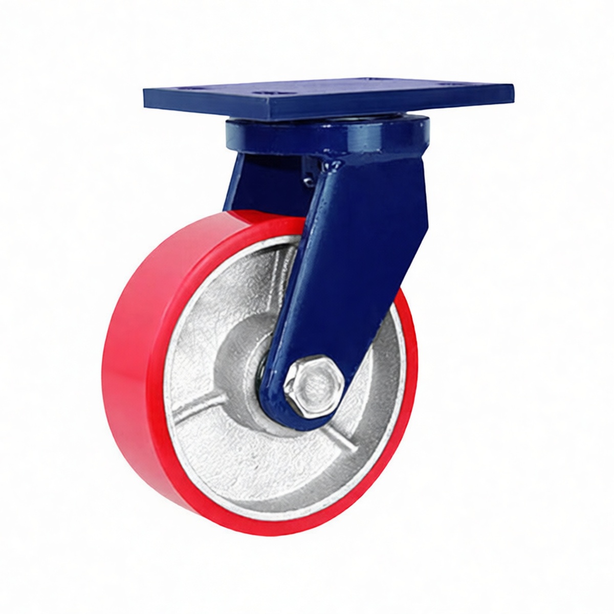 Heavy manufacturing assembly lines Warehouse logistics and pallet transport systems Industrial machinery relocation and installation Automotive production equipment Food processing facilities requiring washdown-compatible hardware Hospital and laboratory equipment movement where floor preservation is priority Aerospace component handling carts The design prioritizes safety and stability under significant stress. The wide 2-inch tread width distributes weight evenly, preventing point-loading damage to concrete or epoxy floors. The plate mount configuration offers a secure attachment surface, utilizing a standardized bolt pattern that simplifies integration into existing custom carts or OEM equipment frames. Unlike softer rubber compounds, the polyurethane formulation used here maintains its shape under maximum load, preventing deformation that can lead to uneven rolling or tracking issues. This caster is specifically suited for environments where both high weight distribution and reliable maneuverability are required simultaneously. The iron core prevents the wheel from collapsing under extreme weights, a common failure point in all-plastic or hollow-core alternatives. Whether deployed in a fabrication shop, distribution center, or maintenance facility, this caster provides the necessary support to keep operations moving efficiently without compromising infrastructure or worker safety.