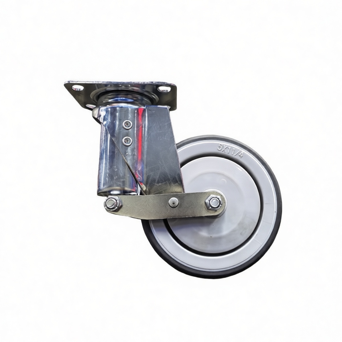 Load Capacity: 220 lbs per caster Wheel Diameter: 4.9 inches Wheel Width: 1.26 inches Overall Mounting Height: 6.4 inches Mounting Plate Dimensions: 2.87 x 1.77 inches Bolt Hole Spacing: 2.87 x 1.77 inches Wheel Material: High-grade Rubber Frame Construction: Steel with spring suspension Mounting Type: Top Plate Fixed Package Quantity: 5 units per pack