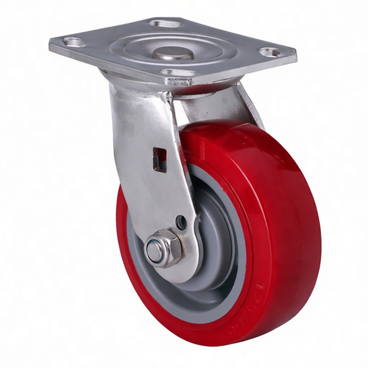 This heavy-duty industrial caster is engineered for demanding environments where corrosion resistance, high load capacity, and floor protection are critical. Constructed with a robust stainless steel framework, it offers superior durability against harsh chemicals, moisture, and frequent washdown procedures. The unit features a 5-inch high-strength polyurethane wheel designed to support substantial weights while minimizing rolling resistance and protecting sensitive flooring surfaces from scuffing or damage. With a swivel design that ensures effortless maneuverability in tight spaces, this caster is an ideal solution for mobile equipment in food processing, pharmaceutical, medical, and cleanroom applications where hygiene and structural integrity cannot be compromised.