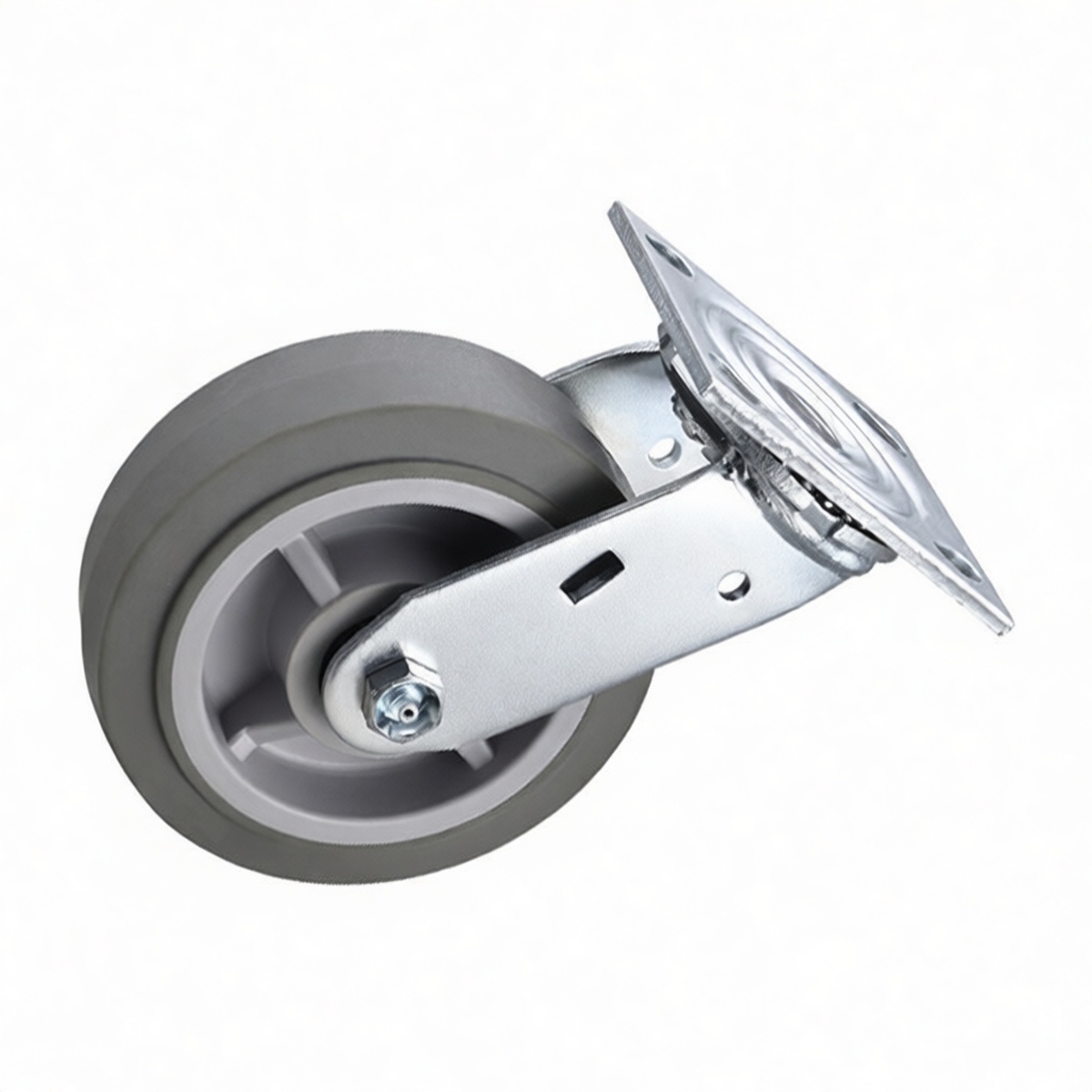 Quiet TPR wheel composition minimizes noise and prevents floor marking Static load rating of 396 lbs supports substantial industrial equipment 360-degree swivel action enables effortless maneuverability in tight spaces Robust plate mount design ensures secure attachment to various substrates Low rolling resistance reduces operator fatigue during manual pushing Durable construction withstands demanding commercial and warehouse conditions