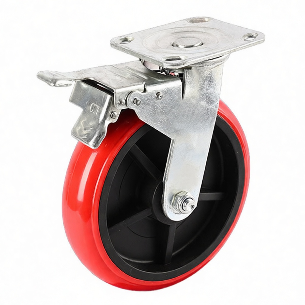 Durable polyurethane wheel construction prevents floor scuffing and marking Integrated swivel brake mechanism provides secure locking on inclines and flat surfaces Smooth 360-degree swivel action enables precise maneuverability in tight spaces Static load capacity rated at 200 lbs per caster unit Non-marking tread suitable for sensitive indoor flooring such as epoxy, tile, and hardwood Resilient