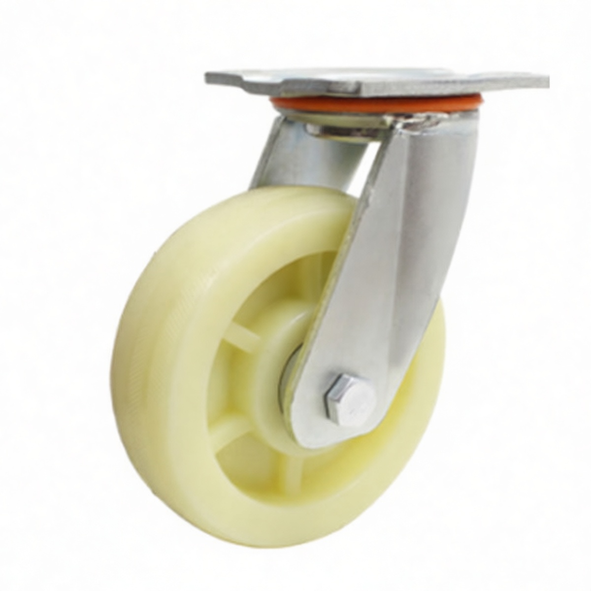 High-load design rated for 140 lbs per caster Precision swivel mechanism enables effortless 360-degree rotation Hard nylon wheel resists flattening and maintains shape under pressure Polypropylene housing provides superior chemical and impact resistance Low rolling resistance facilitates easy pushing and pulling of heavy loads Suitable for use on concrete, tile, and other hard industrial flooring Packaged in sets of eight for efficient bulk installation and replacement