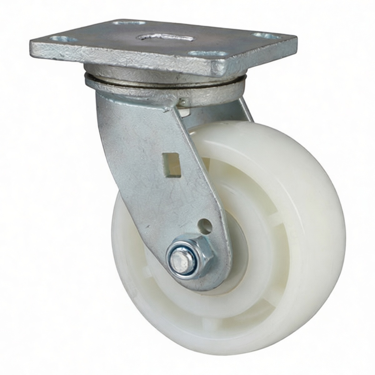 handling and equipment mobility. Featuring a robust 6.75-inch nylon wheel, the unit supports a substantial load capacity of 800 lbs, making it ideal for transporting heavy machinery, storage racks, and production line assets. The overall height of 7.5 inches provides optimal ground clearance while maintaining a low center of gravity for enhanced stability during operation. Constructed entirely from high-grade nylon, the assembly offers superior resistance to impact, corrosion, and chemical exposure, ensuring long-term durability in harsh factory environments. The precision swivel mechanism facilitates smooth 360-degree rotation, allowing for effortless maneuverability in tight spaces and high-traffic areas without compromising structural integrity.