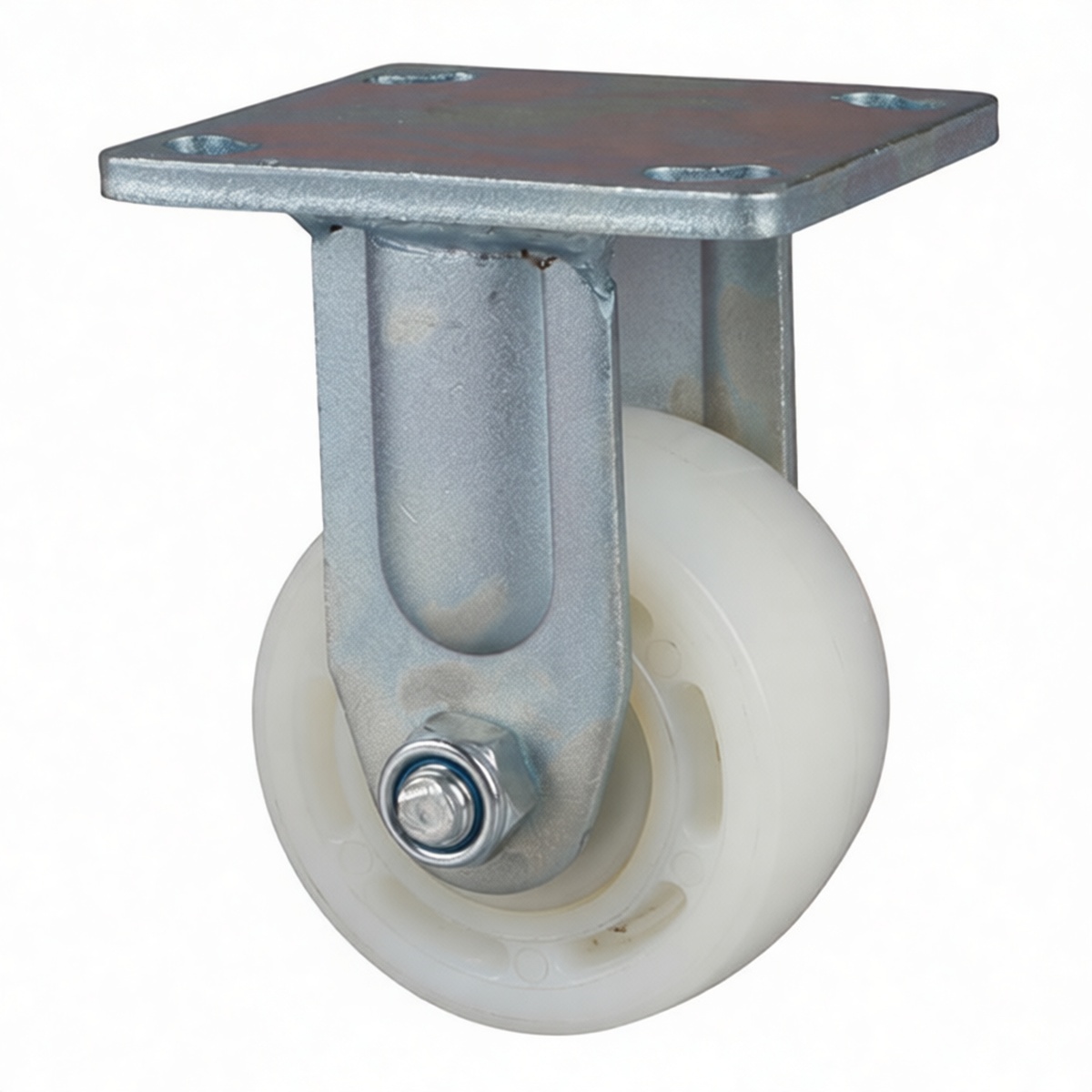 Robust 1,650 lbs load capacity per individual caster unit 6-inch diameter high-strength nylon wheel for smooth rolling resistance Galvanized steel top plate provides enhanced corrosion protection Rigid fixed design ensures stable, straight-line directional tracking Non-marking wheel composition protects epoxy and concrete floors Maintenance-free operation eliminates the need for regular lubrication Resistant to oils, greases, and most industrial solvents Impact-resistant construction withstands rough handling and debris