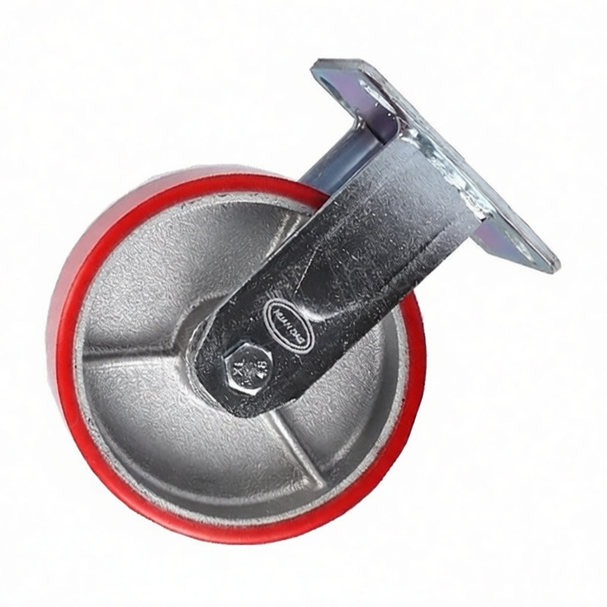 where stability and load capacity are paramount. Featuring a robust iron core construction, the unit provides exceptional structural integrity to support demanding operational environments. The wheel utilizes a high-grade polyurethane tread that offers an optimal balance between durability and floor protection, preventing scuffing or damage to sensitive warehouse surfaces. With a non-swiveling design, this caster ensures precise linear movement, making it ideal for equipment that requires strict directional control without lateral drift. Each package contains two units, allowing for immediate replacement or dual installation on machinery frames.