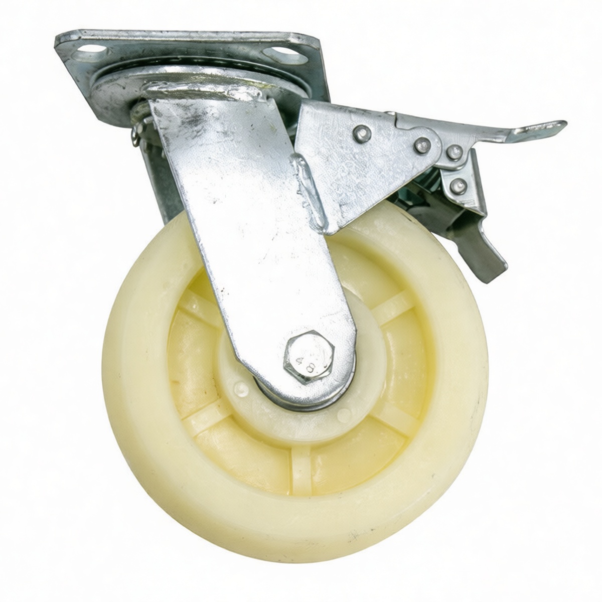 6" Nylon Plate Mount Caster w/ Brake, 617 lbs Load, White, Pkg Qty 12