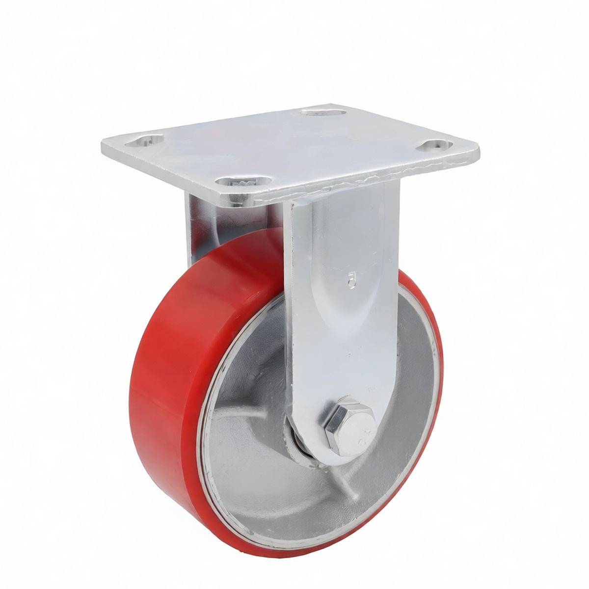 Fixed-direction design provides superior stability for straight-line movement Heavy-duty iron core construction supports loads up to 924 lbs per unit Polyurethane wheel tread offers excellent floor protection and noise reduction High-load capacity suitable for transporting dense industrial materials Robust plate mount ensures secure attachment to various equipment frames Resistant to chemicals, oils, and common industrial solvents Low rolling resistance reduces operator fatigue during manual pushing