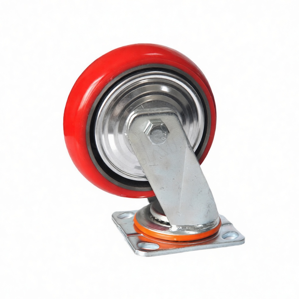This heavy-duty swivel plate caster is engineered for demanding industrial environments where reliable mobility and floor protection are paramount. Designed to support medium-to-heavy equipment, the unit features a robust red polyurethane wheel that balances high load-bearing capacity with gentle treatment of sensitive flooring surfaces. The swivel mechanism ensures smooth 360-degree maneuverability, allowing operators to navigate tight spaces and complex layouts with minimal effort. Supplied in bulk packaging of 50 units, this solution is ideal for large-scale facility upgrades, fleet replacements, or original equipment manufacturing integration where consistency and durability are critical.