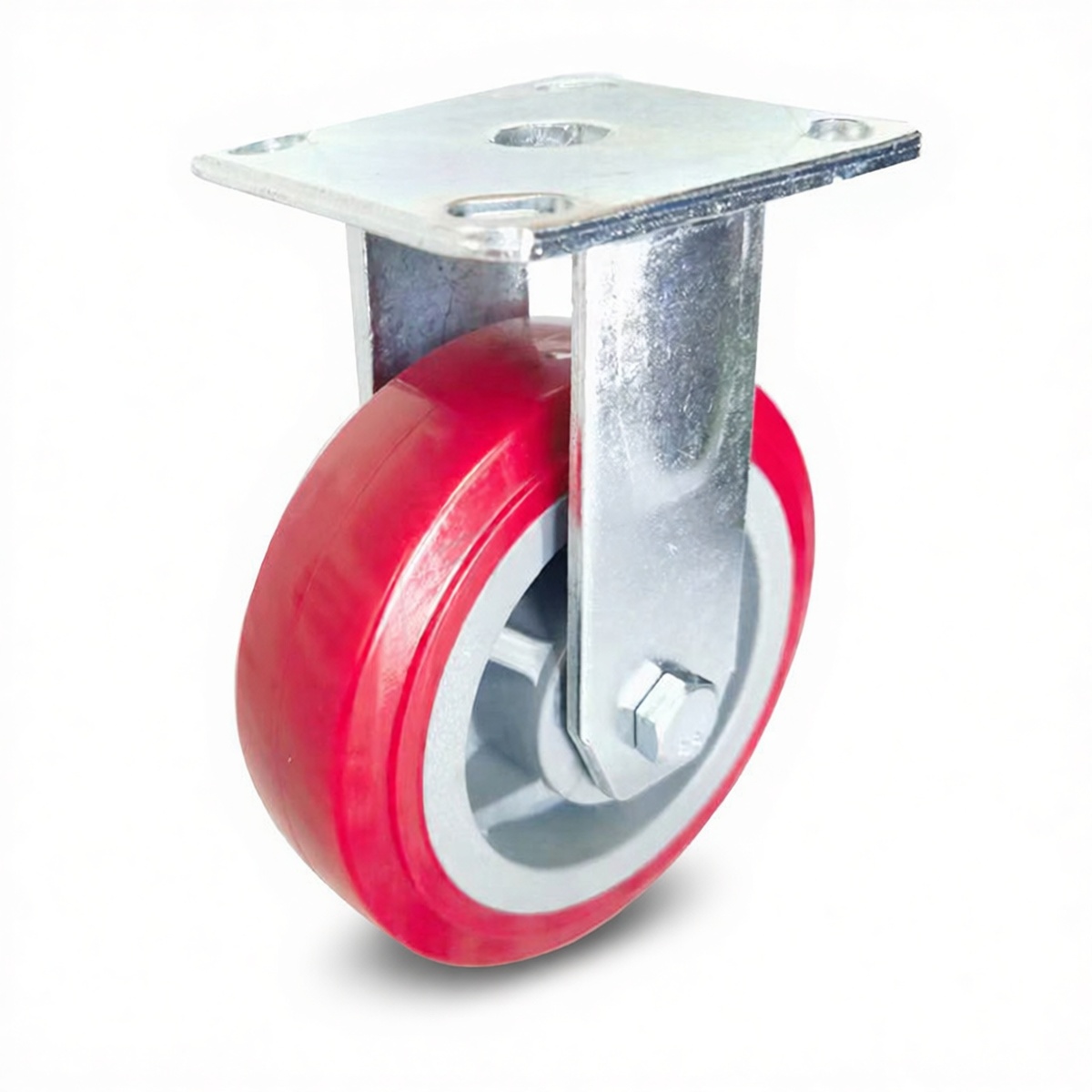Static load capacity rated at 924 lbs per caster Fixed rigid design ensures stable straight-line tracking Red PVC wheel material resists abrasion and chemical exposure Non-marking tread protects sensitive concrete and epoxy floors Heavy-gauge steel top plate prevents deformation under stress Smooth rolling performance on hard industrial surfaces Corrosion-resistant finish suitable for harsh environments