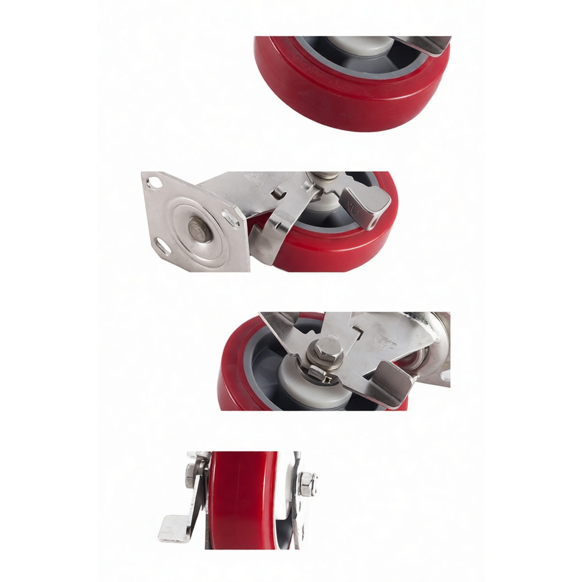 Maximum load capacity of 924 lbs per caster Constructed entirely from corrosion-resistant stainless steel 6-inch diameter high-strength polyurethane wheel for superior floor protection Integrated top-lock brake mechanism for secure stationary holding Precision ball bearing raceway for effortless maneuverability Resistant to oils, greases, and most industrial chemicals Non-marking wheel tread suitable for sensitive factory floors Reinforced mounting plate for enhanced structural integrity