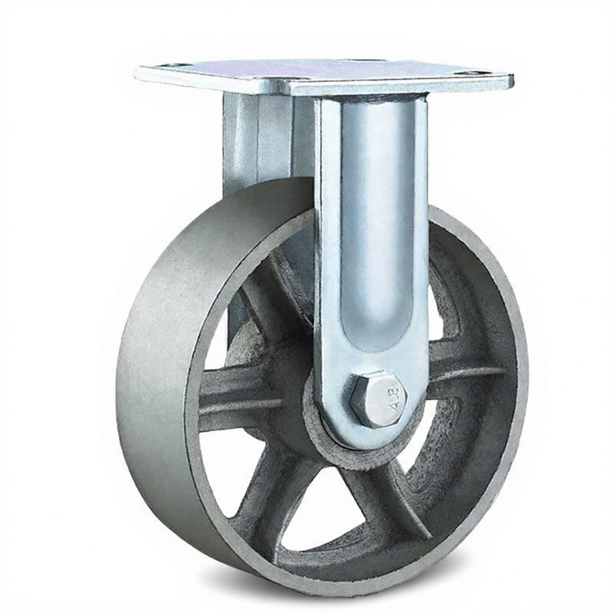 handling Equipment requiring strict straight-line tracking Detailed Performance Notes The use of cast iron for the wheel tread offers superior durability compared to rubber or polyurethane alternatives when operating on uneven or debris-laden floors. While this