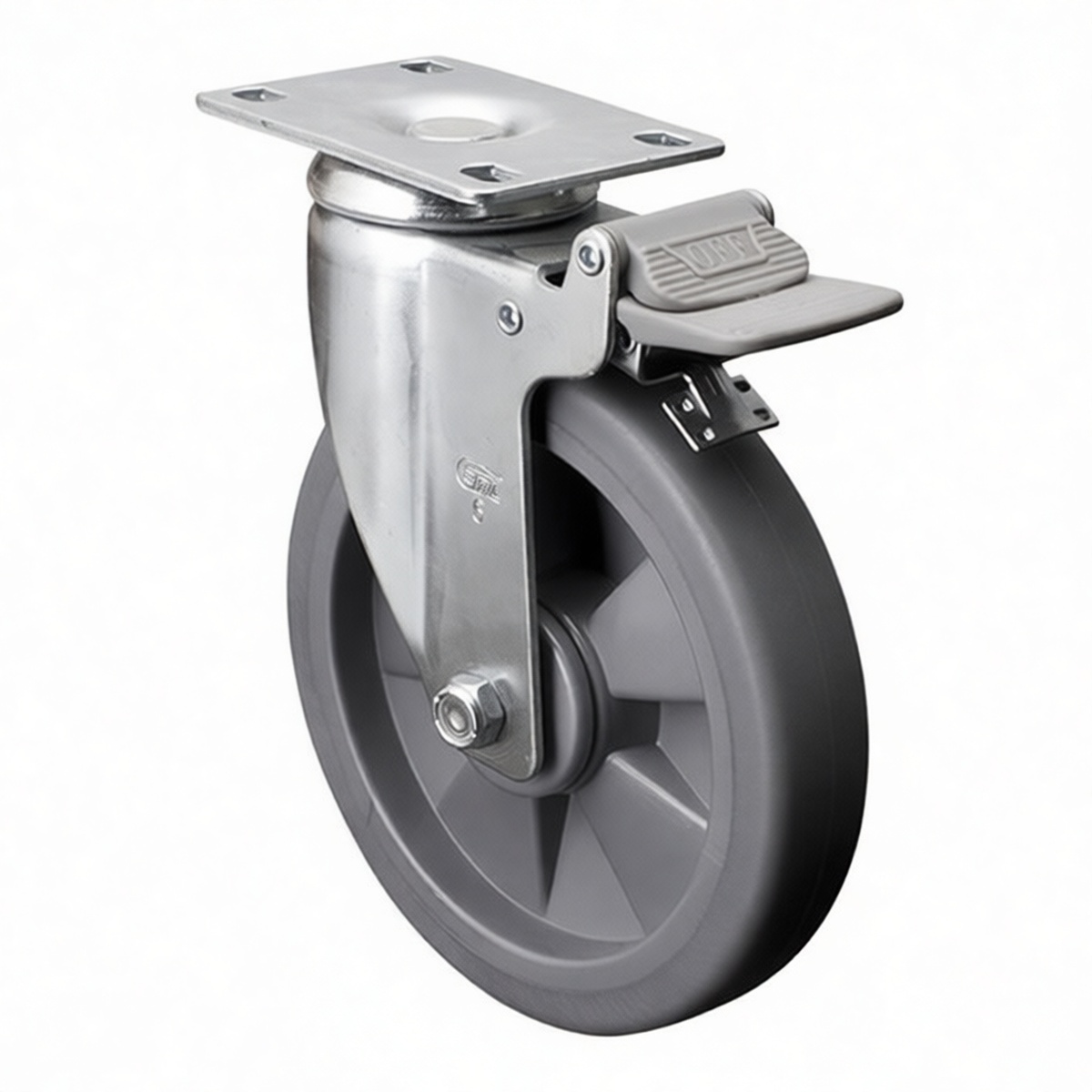 Hospitality carts and housekeeping equipment Medical supply transport and hospital beds Light manufacturing assembly lines Warehouse order picking carts Office furniture and movable partitions Food service utility carts Retail stock replenishment trolleys Laboratory equipment stands Performance and Durability The combination of a rubber tread and TPE housing provides exceptional resistance to wear while maintaining a low noise profile, which is critical for environments such as hospitals, hotels, and quiet office spaces. The 6-inch wheel size offers an optimal rolling radius that reduces the force required to initiate movement, thereby lowering operator fatigue during extended shifts. The braking mechanism is engineered for positive engagement, preventing unintended drift on slightly inclined surfaces. These components are manufactured to withstand repeated stress cycles typical in commercial and industrial settings, ensuring a long service life with minimal maintenance requirements. The packaging dimensions of 95.5 by 66.5 by 6 inches facilitate efficient storage and logistics planning for bulk procurement.