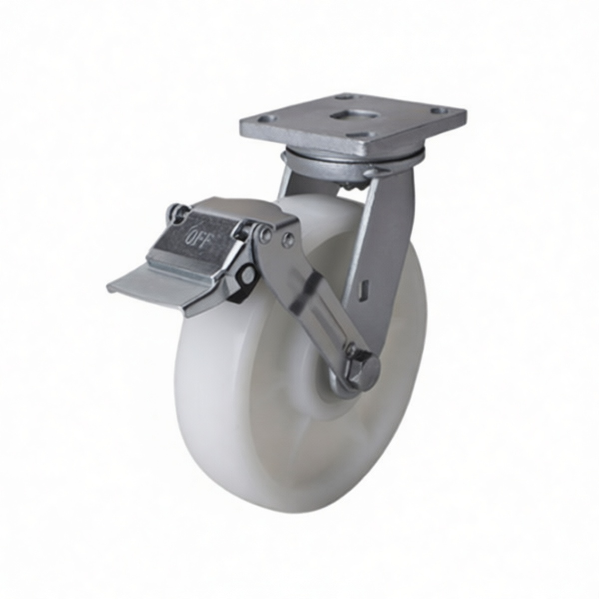 This heavy-duty swivel caster is engineered to meet the rigorous demands of industrial material handling and equipment mobility. Designed for stability and longevity, the unit features a high-strength nylon wheel capable of supporting substantial loads while protecting floor surfaces from damage. The integrated braking system provides reliable locking power, ensuring that carts, machinery, or workstations remain securely positioned during loading, unloading, or stationary operations. With a robust plate mount configuration, this caster offers a secure attachment point for heavy frameworks, delivering smooth maneuverability even under maximum weight conditions.