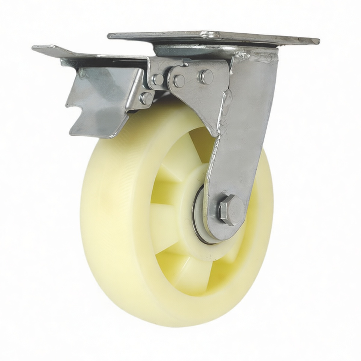 High-load design supports up to 510 lbs per unit Durable nylon wheel resists abrasion and chemical exposure Integrated dual-lock brake secures wheel and swivel movement Smooth swivel action allows for precise maneuverability in tight spaces Non-marking tread protects sensitive industrial flooring Bulk packaging of 100 units supports large-scale installation projects Maintenance-free construction reduces operational downtime