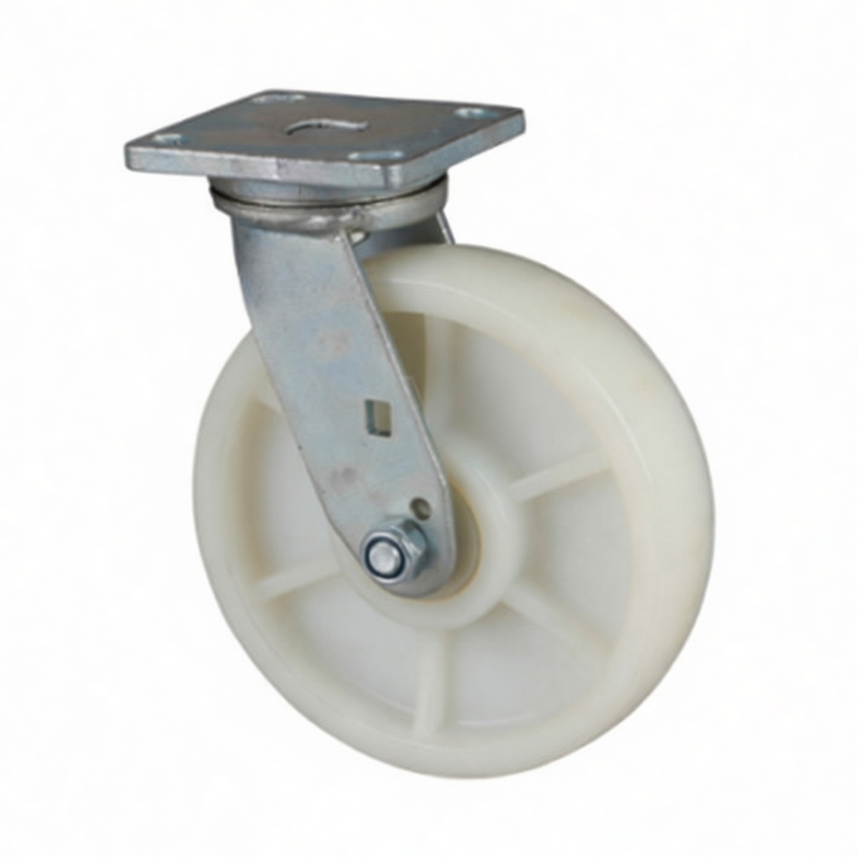 This industrial-grade swivel plate caster is engineered to meet the rigorous demands of heavy-duty material handling and facility logistics. Designed with a robust high-strength nylon construction, the unit delivers exceptional performance in environments where durability, chemical resistance, and floor protection are paramount. The caster supports a substantial static load capacity of 1,980 lbs, making it an ideal solution for transporting heavy machinery, large equipment carts, and industrial storage racks. Its precision-engineered swivel mechanism ensures smooth 360-degree maneuverability, reducing operator fatigue and increasing workflow efficiency across concrete, epoxy, and other common industrial flooring types.