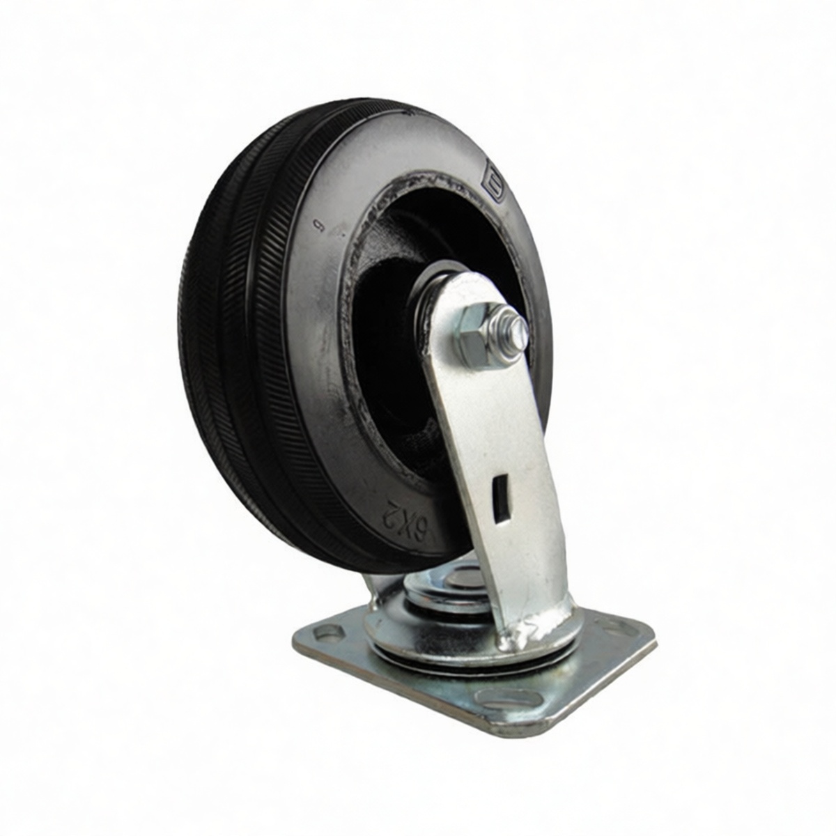 Double axle swivel mechanism for enhanced directional stability under load High-density rubber wheel tread minimizes floor marking and reduces operational noise Rated load capacity of 661 lbs per caster for heavy industrial applications Precision ball bearing raceway ensures effortless 360-degree rotation Durable construction resists deformation under continuous static and dynamic stress Shock-absorbing wheel material protects sensitive cargo from vibration Optimized wheel diameter of 7.9 inches balances rolling resistance and obstacle clearance