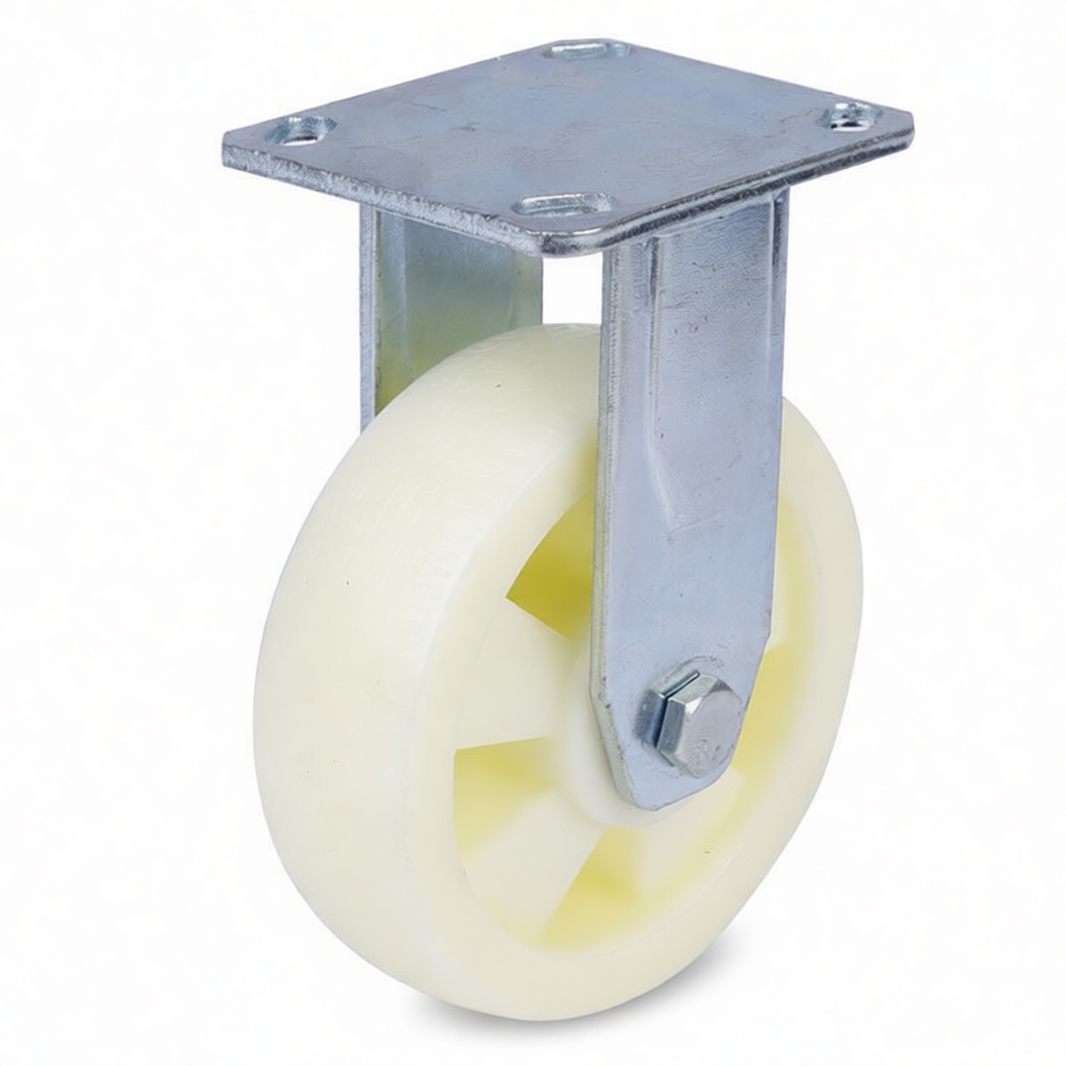 handling and commercial equipment mobility. Featuring a robust 8-inch nylon wheel, this unit delivers exceptional load-bearing capabilities while maintaining smooth rolling resistance across varied floor surfaces. The design prioritizes stability and linear precision, making it an ideal choice for assembly lines, large transport carts, and machinery that requires controlled straight-line movement. With a substantial overall height of 9.06 inches, these casters provide necessary ground clearance for bulky apparatuses without compromising structural integrity. Each package contains five units, ensuring facilities have sufficient components for complete equipment upgrades or maintenance replacements.