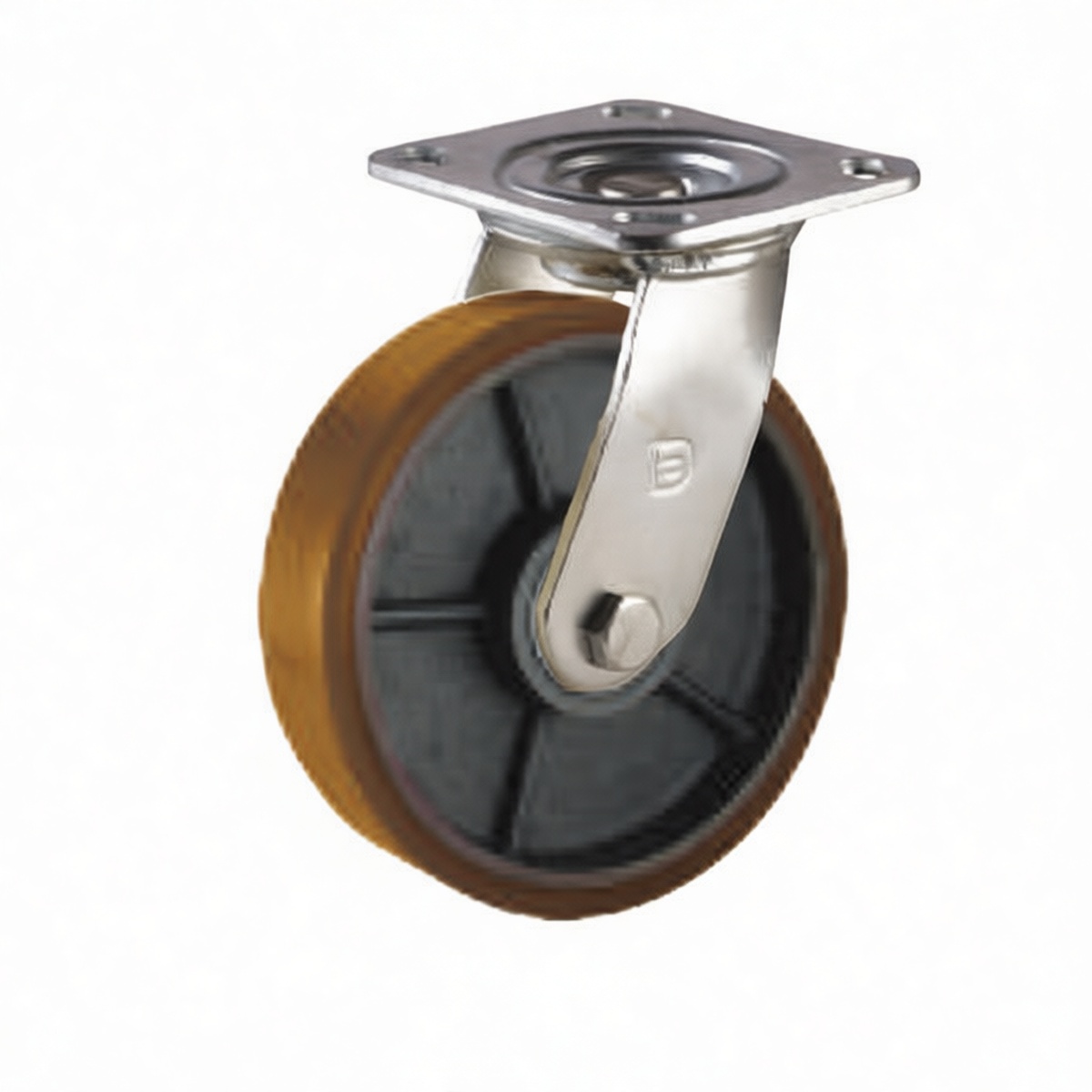 handling fleets with components that balance strength, silence, and surface preservation. Its double-axis architecture allows for effortless navigation around tight corners and obstacles, reducing operator fatigue and increasing workflow efficiency. The polyurethane formulation offers optimal resistance to abrasion, oils, and common industrial solvents, ensuring extended service life even in harsh conditions. Whether deployed in automated guided vehicle retrofits or manual push-pull applications, this unit maintains consistent performance under dynamic loading scenarios. Installation is straightforward via the standardized double-axis stem, compatible with a wide range of mounting plates and frame configurations. For operations prioritizing equipment longevity, floor maintenance cost reduction, and ergonomic handling, this caster delivers measurable value through its rugged build quality and refined mechanical design.