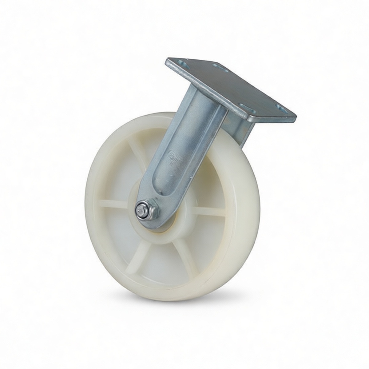 a large 9.75-inch nylon wheel that provides an optimal balance between durability and floor protection. With a compact overall height of 8 inches, this component offers a low-profile solution that fits seamlessly into confined spaces without sacrificing performance. The directional stem design ensures stable, linear tracking, which is critical for