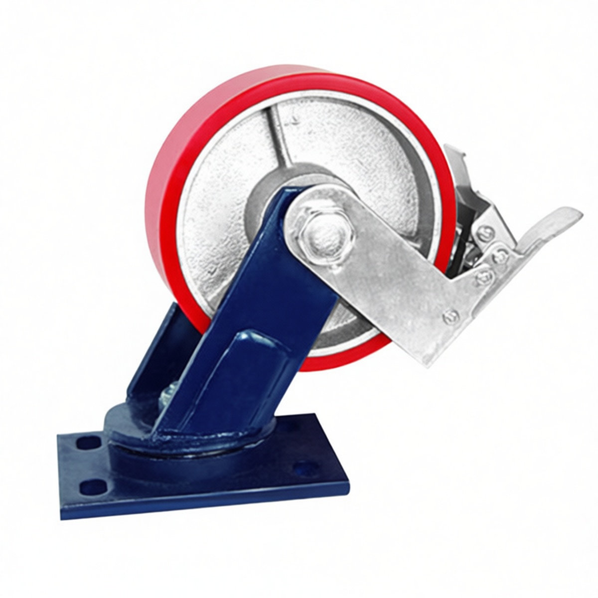 Heavy manufacturing assembly lines Warehouse pallet transport carts Industrial shelving and racking systems Large-scale medical equipment movers Food processing facility transport vehicles Automotive plant tooling carriers Foundry and metal fabrication support carts The design prioritizes both operator safety and equipment longevity. The polyurethane wheel material offers a superior balance between load-bearing strength and shock absorption, reducing vibration transmitted to the load during transit over uneven surfaces. The plate mount configuration provides a wide distribution of weight across the attachment point, minimizing stress on the host equipment frame. The integrated brake system allows operators to quickly lock the wheel in place, preventing unintended movement during loading, unloading, or stationary work phases. With an overall height profile optimized for low-center-of-gravity stability, these casters reduce the risk of tipping when navigating corners or inclines. This product serves as a critical component for any facility requiring dependable mobility solutions that can withstand continuous use under extreme weight conditions while maintaining floor protection standards.