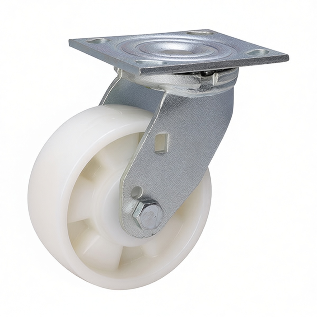 Heavy machinery relocation and positioning Industrial workbench and workstation mobility Transport of loaded pallet jacks and hand trucks Movement of large HVAC units and generators Assembly line cart systems in automotive manufacturing Warehouse logistics and storage rack mobility Food processing equipment where chemical resistance is required These casters are specifically optimized for use on rigid indoor flooring such as sealed concrete, epoxy coatings, or industrial tile. The nylon composition of the wheel prevents deformation under heavy weights, ensuring consistent rolling resistance over time. The top plate configuration allows for versatile installation on a wide range of equipment bases, provided the mounting surface can accommodate the 4.6 by 4-inch footprint. By distributing weight evenly across the wheel face, this design minimizes point loading and extends the service life of both the caster and the floor. Whether deployed in a fabrication shop, distribution center, or maintenance facility, this caster solution delivers reliable performance for critical material handling tasks.
