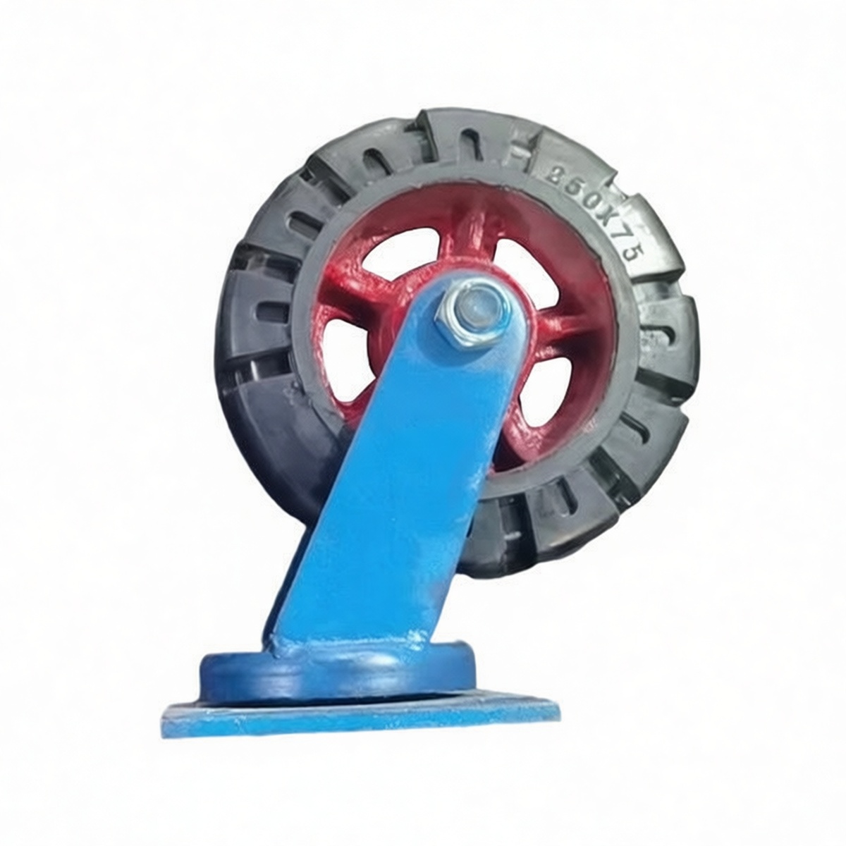 Engineered for the most demanding industrial environments, this heavy-duty swivel stem caster combines a rugged iron core with a high-resilience rubber tread to deliver exceptional load-bearing performance and floor protection. Designed to support massive machinery and equipment, each unit boasts a substantial load capacity of 2,200 lbs, ensuring stability during transport. The large 9.8-inch wheel diameter allows for effortless maneuverability over rough concrete, expansion joints, and minor debris, reducing operator fatigue and increasing workflow efficiency. With a full 360-degree swivel mechanism, these casters provide precise positioning capabilities essential for tight warehouse aisles and assembly lines. Sold in convenient packages of two, this solution offers reliable durability for facilities requiring robust
