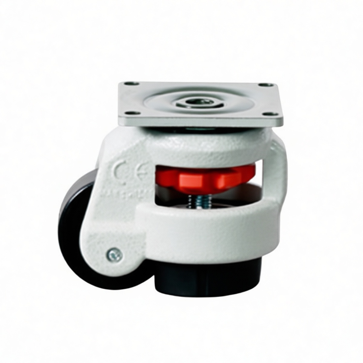 This industrial-grade leveling caster is engineered to provide precise height adjustment and stable support for heavy machinery and equipment. Designed with a robust plate mount configuration, the unit ensures secure attachment to various frame types while offering reliable mobility when needed. The construction utilizes high-performance nylon for both the wheel and the main body, delivering exceptional resistance to corrosion, chemicals, and moisture. With a substantial load capacity, this component is ideal for environments where consistent performance under significant weight is critical. The design minimizes floor marking and damage, making it suitable for facilities with strict flooring maintenance requirements.